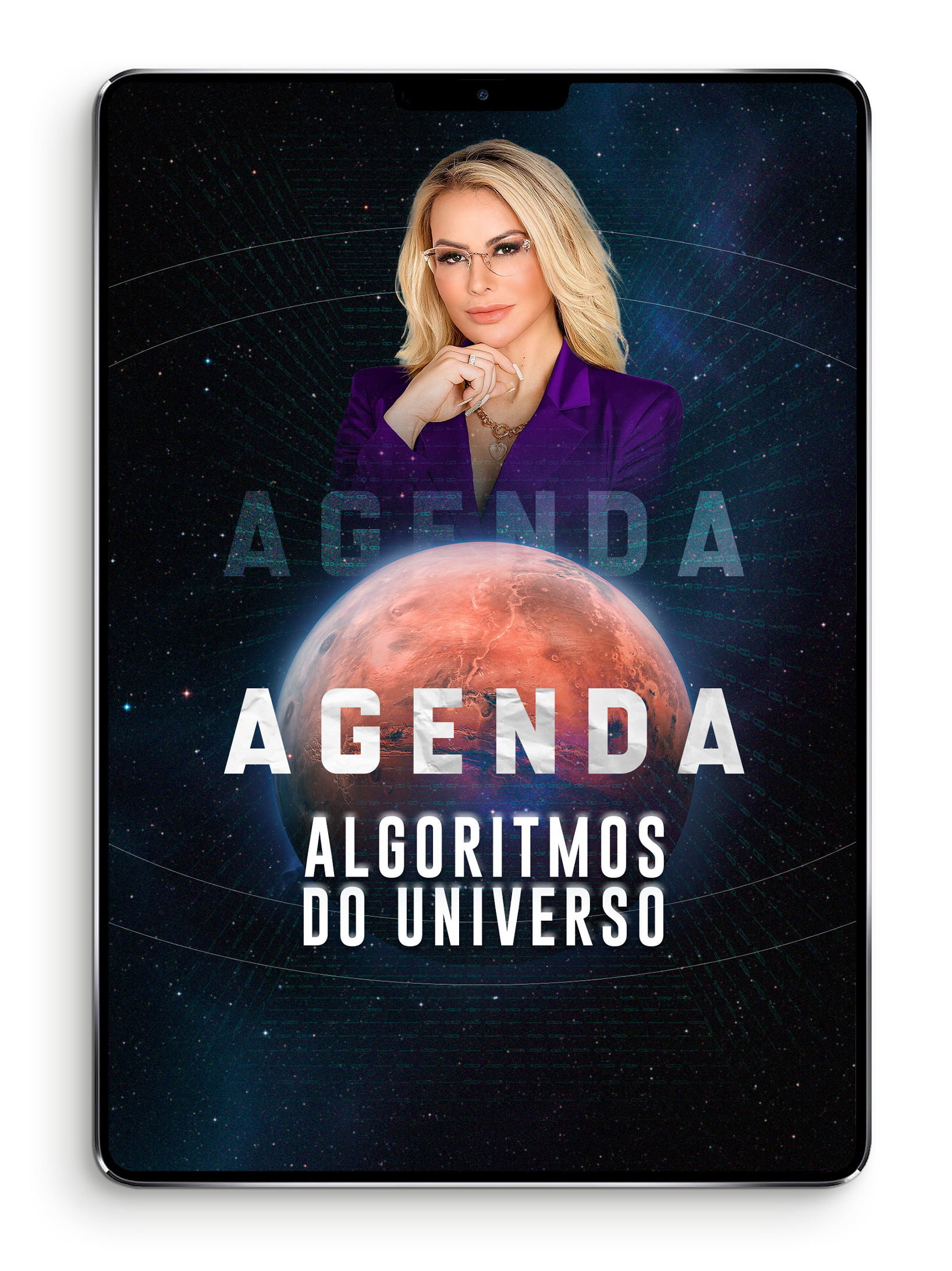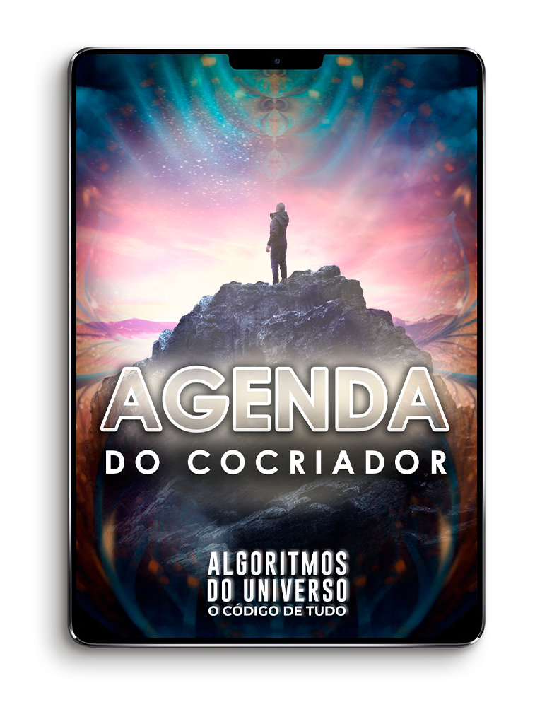 A sua agenda Algoritmos do Universo apresentará um Passo a Passo para a Cocriação, um planejamento estratégico para você criar, planejar e conquistar metas durante seu ano.